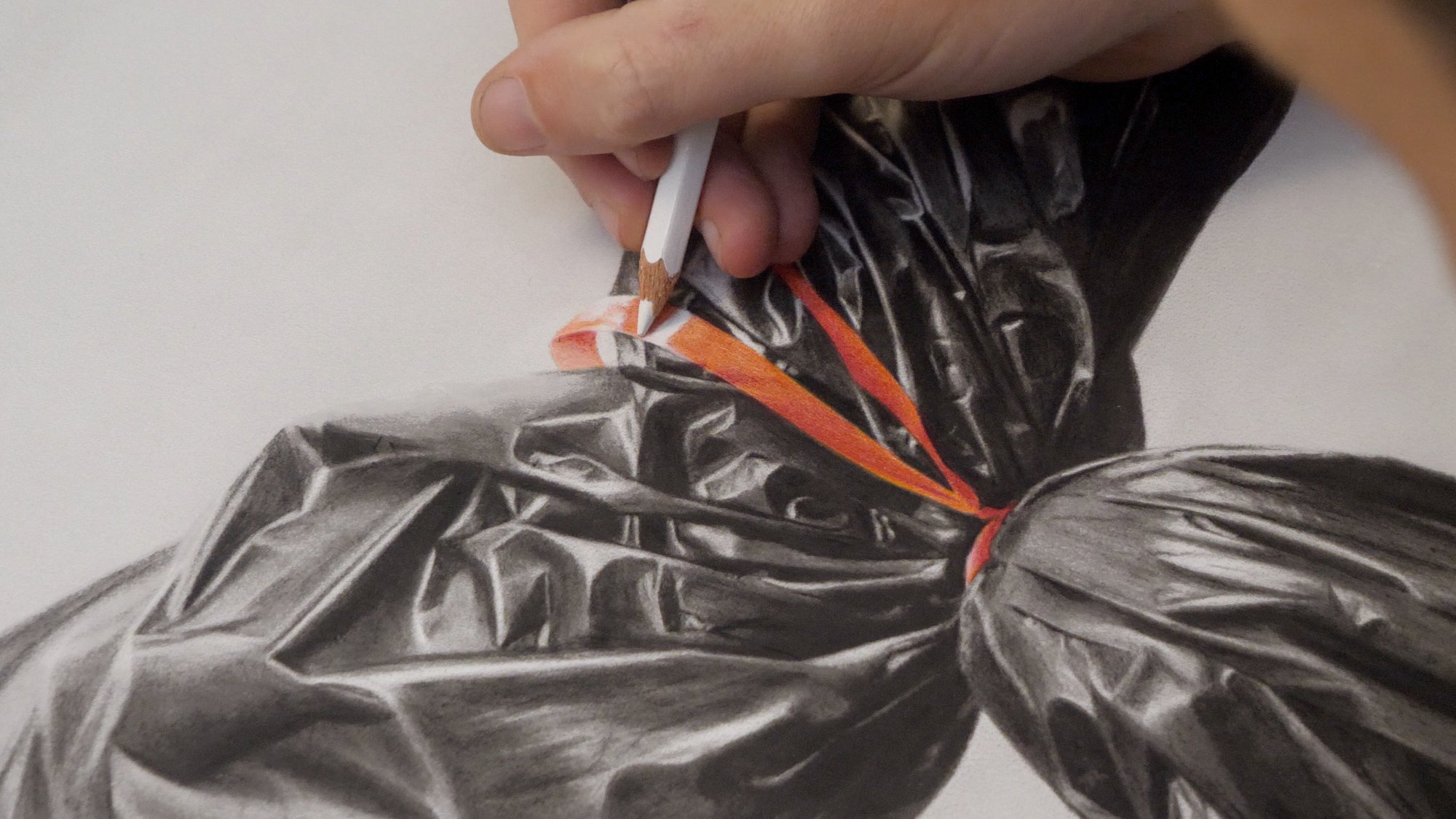 6 colours Screen print, Red ribbon drawn with colour pencils on Arche 88 paper 100% cotton 300g.